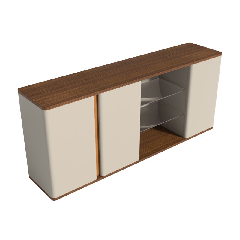 開(kāi)放式層板采用清璃材質(zhì),對(duì)開(kāi)掩門拉手處采用捫皮工藝